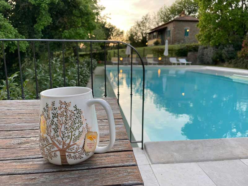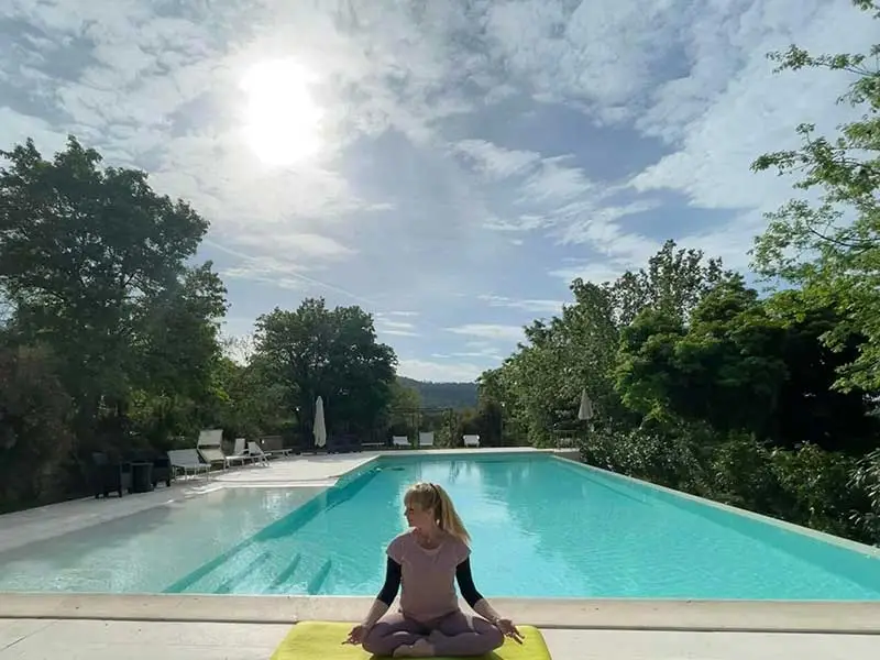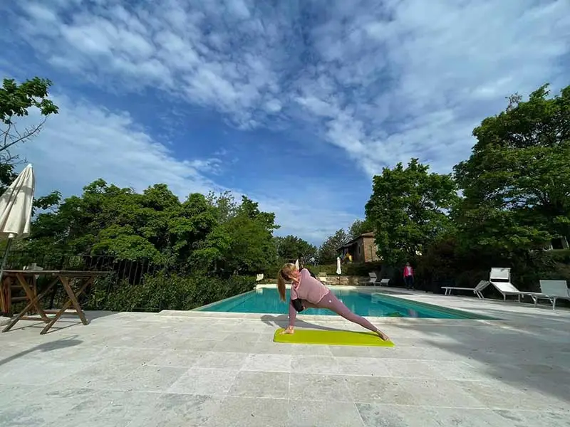Bivamo na zasebnem posestvu s privat bazenom in osebnim kuharjem. Vsak dan imamo poleg joge tudi različne dejavnosti in oglede toskanskih znamenitosti.