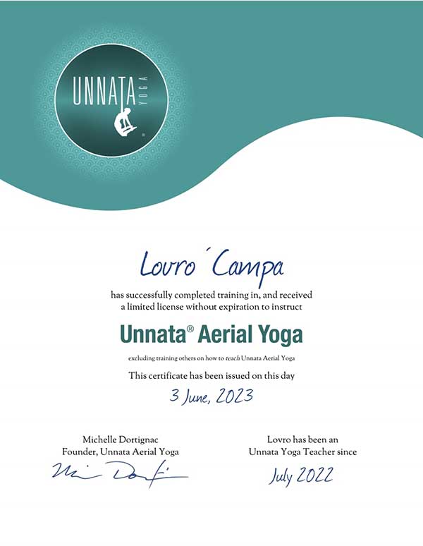 Končal je tudi šolanje Aerial joge v priznani ameriški šoli Unnata Aerial school, ki jo vodi Michelle Dortignac.